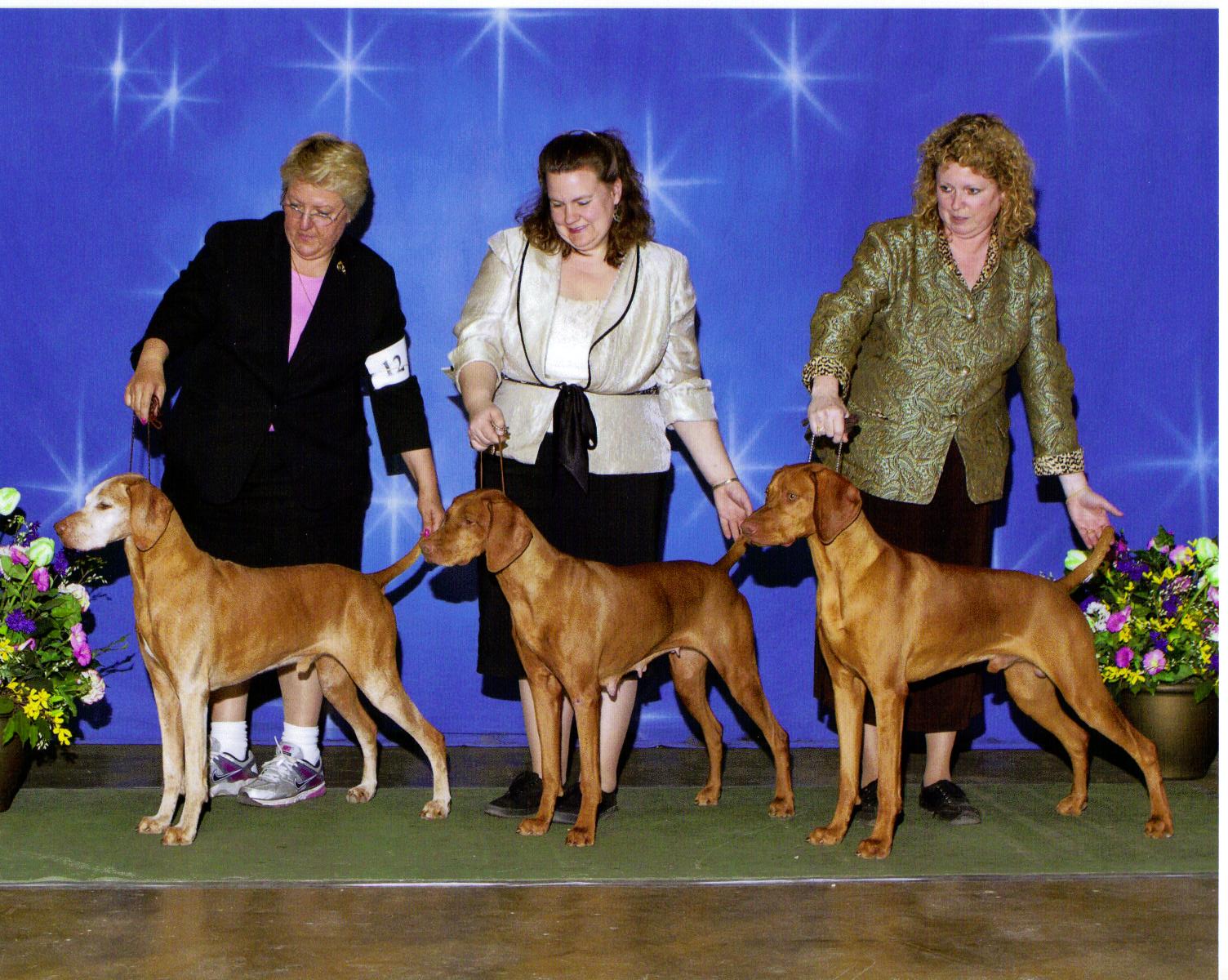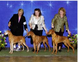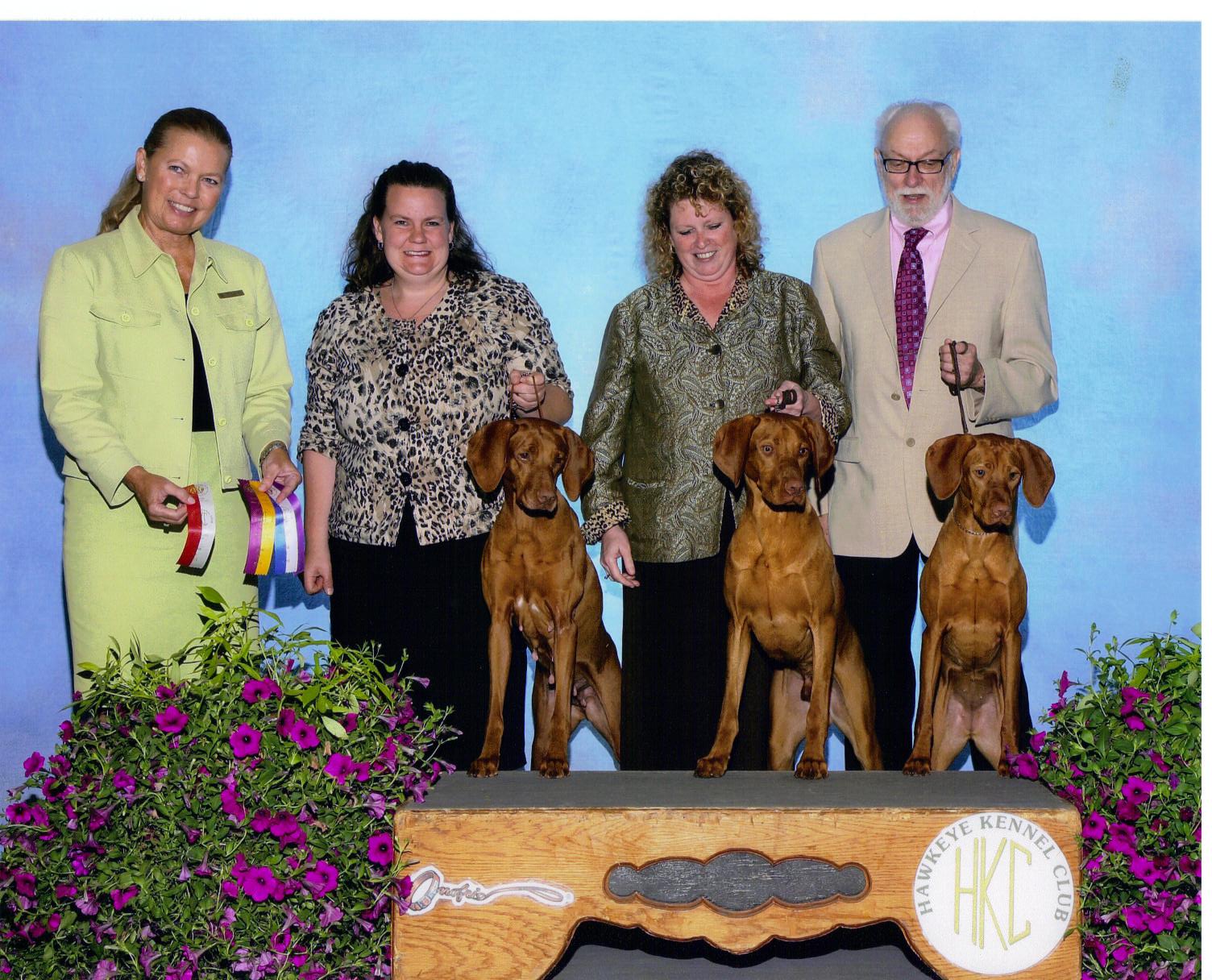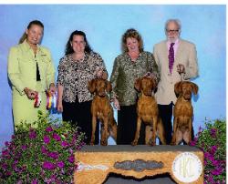 | Pictured above is Judge, Paula Nykiel, Jill Hoffbeck with Star, Eva Phillippi with Maverick and Ron Halpaus with Willow. This day the went BOB/BOW/WD Maverick, BOS Star and WB/New Champion WIllow!! |
