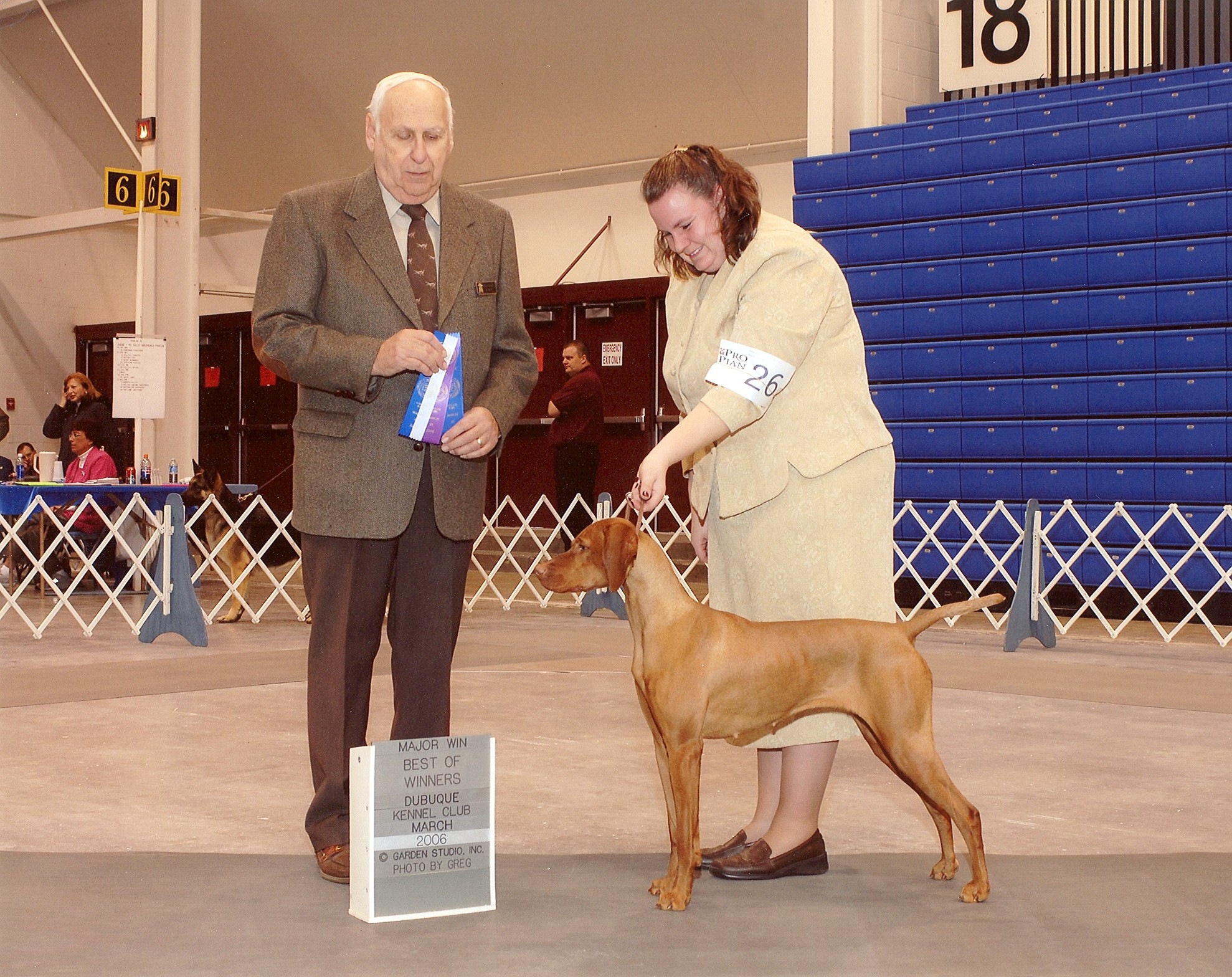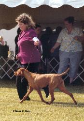 Holly is a beautiful specimen of the breed who finished her bench championship quickly and finished after taking Winner's Bitch at the Twin Cities Vizsla Club St. Peter Specialty and Best of Winner's the following day.