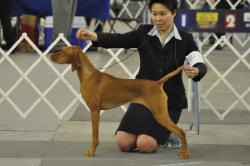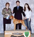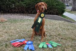 Karma has proven at a young age that she has what it takes. She earned points toward her Championship her first weekend out as a puppy, has taken a Puppy Sporting Group 2, a Best of Opposite Sex in the Twin Cities Vizsla Club Sweepstakes and also earned a major. (We won't mention all of the reserves she's already been graced with.)
